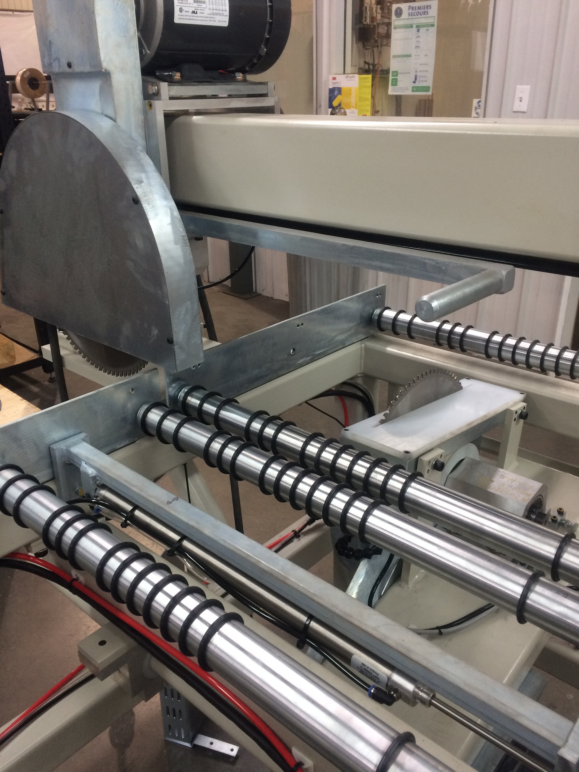 Scie commerciale à simple ou double fonction, spécialement conçue pour couper des portes en acier, coupe sur la hauteur et la largeur des panneaux.